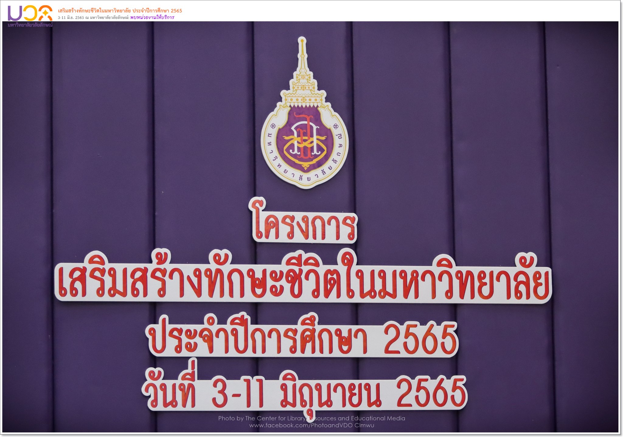 อนึ่ง โครงการเสริมสร้างทักษะชีวิตในมหาวิทยาลัย เป็นโครงการที่จัดขึ้นเพื่อต้อนรับนักศึกษาใหม่ที่เข้ามาเรียนในมหาวิทยาลัยวลัยลักษณ์ ให้สามารถปรับตัว และมีความพร้อมในการเรียน การใช้ชีวิตในมหาวิทยาลัยได้ดีขึ้น ซึ่งมหาวิทยาลัยมีกำหนดจัดกิจกรรมในระหว่างวันที่ 3-11 มิถุนายน พ.ศ. 2565 โดยศูนย์บรรณสารฯ มีภาระหน้าที่ในการให้บริการควบคุมอุปกรณ์สื่อโสตฯ ในส่วนงานประชาสัมพันธ์กลาง อาคารอาคารไทยบุรี และในห้องเรียน อาคารเรียนต่างๆ เพื่อรองรับการทำกิจกรรมของนักศึกษาตลอดทั้งโครงการ ตลอดจนถ่ายภาพบรรยากาศตลอดทั้งกิจกรรมเพื่อเก็บไว้ในฐานข้อมูลจดหมายเหตุมหาวิทยาลัยวลัยลักษณ์ซึ่งอยู่ในความรับผิดชอบของศูนย์บรรณสารฯ อีกด้วย