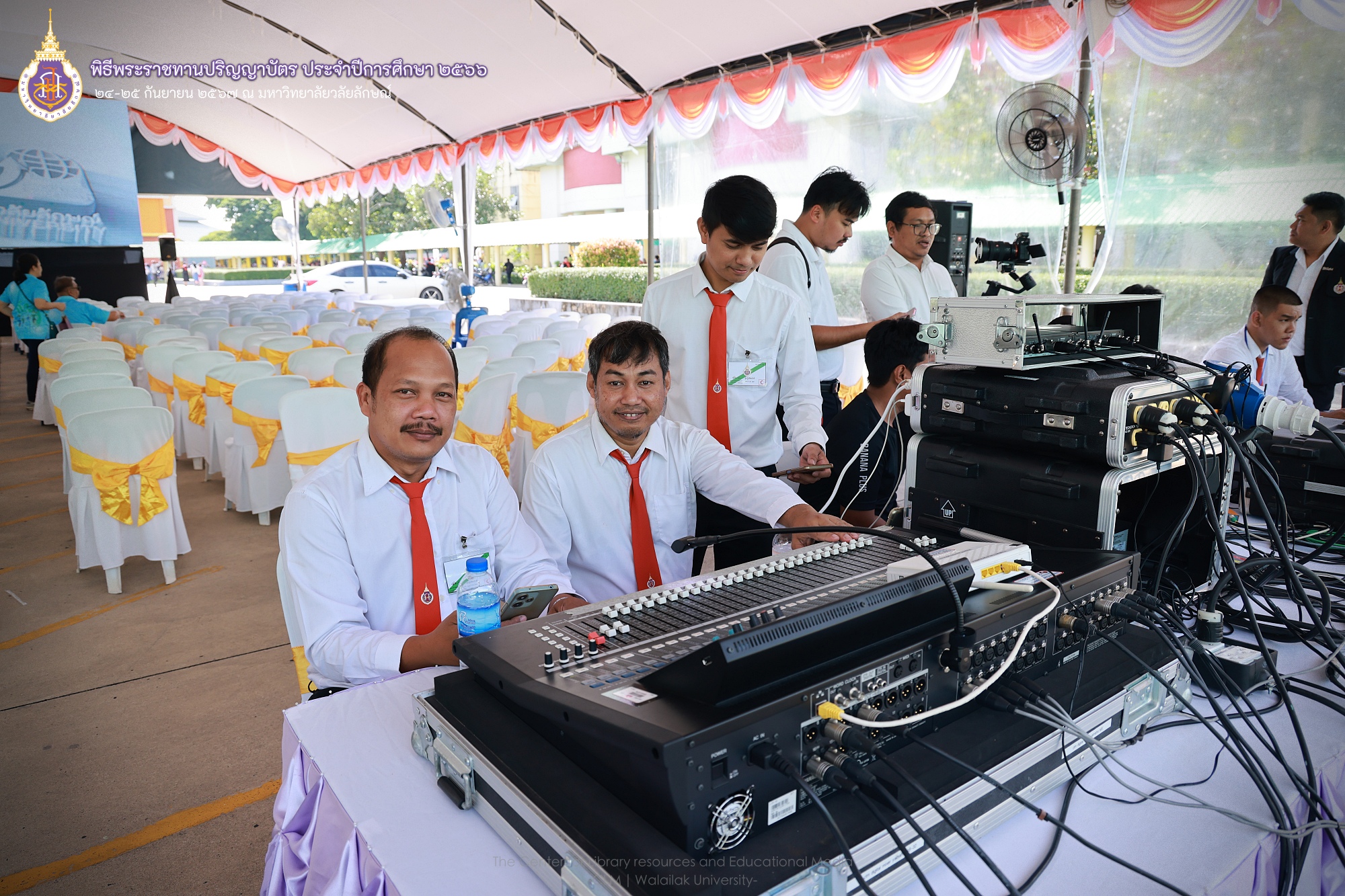 เจ้าหน้าที่ศูนย์บรรณสารและสื่อการศึกษาปฏิบัติหน้าที่ในพิธีพระราชทานปริญญาบัตร ประจำปีการศึกษา 2566