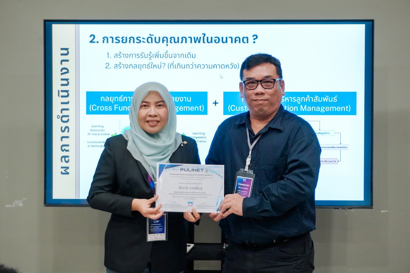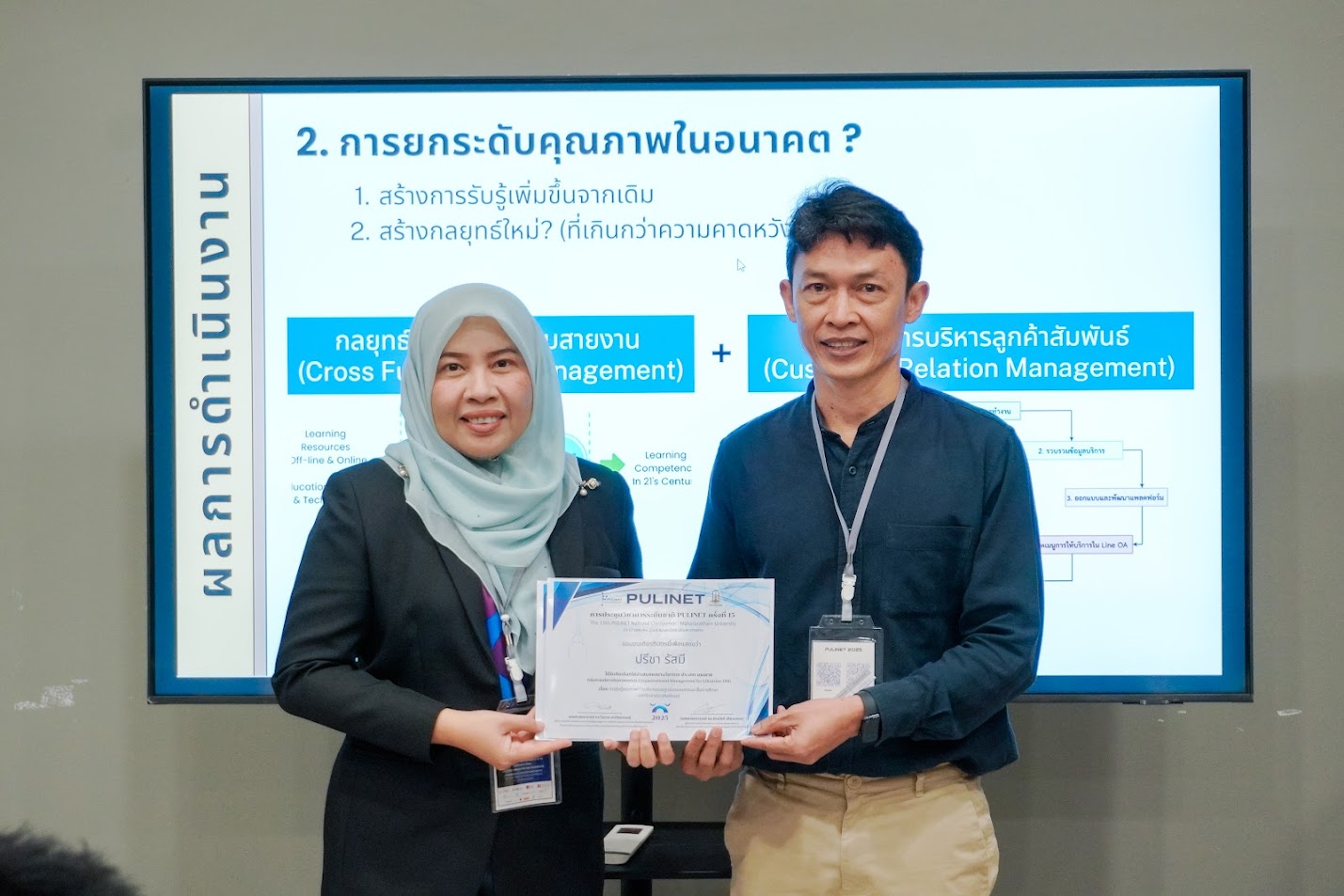 ในปีนี้ สำนักวิทยบริการ มหาวิทยาลัยมหาสารคามเป็นเจ้าภาพจัดการประชุม PULINET 2025 ภายใต้หัวข้อ “Beyond Library: Knowledge Infinity Through the Future” จัดขึ้นระหว่างวันที่ 15-17 มกราคม 2568 ณ อาคารเฉลิมพระเกียรติฯ โดยมีผู้ช่วยศาสตราจารย์ ดร. มลฤดี เชาวรัตน์ รองอธิการบดีฝ่ายพัฒนานิสิตและกิจการสภา มหาวิทยาลัยมหาสารคาม เป็นประธานกล่าวเปิดงาน การประชุมครั้งนี้มีวัตถุประสงค์เพื่อเป็นเวทีแลกเปลี่ยนเรียนรู้และนำเสนอผลงานวิชาการ งานวิจัยให้แก่บุคลากรในเครือข่ายห้องสมุดมหาวิทยาลัยส่วนภูมิภาค โดยมีผู้เข้าร่วมกว่า 300 คนจากเครือข่ายห้องสมุดทั่วประเทศ กิจกรรมภายในงาน มีการบรรยายพิเศษ การนำเสนอผลงานวิจัย กว่า 79 ผลงาน โดยศูนย์บรรณสารและสื่อการศึกษา มหาวิทยาลัยวลัยลักษณ์ ได้ส่งบุคลากรเข้าร่วมนำเสนอผลงาน จำนวน 1 ผล ได้แก่ ผลงานชื่อการรับรู้คุณภาพการบริการของศูนย์บรรณสารและสื่อการศึกษา มหาวิทยาลัยวลัยลักษณ์ นำเสนอโดย นายปรีชา รัสมี หัวหน้าฝ่ายส่งเสริมการเรียนรู้และให้บริการการศึกษา และนายชัชวาล นาคพันธุ์ เจ้าหน้าที่วิเคราะห์ระบบงานคอมพิวเตอร์