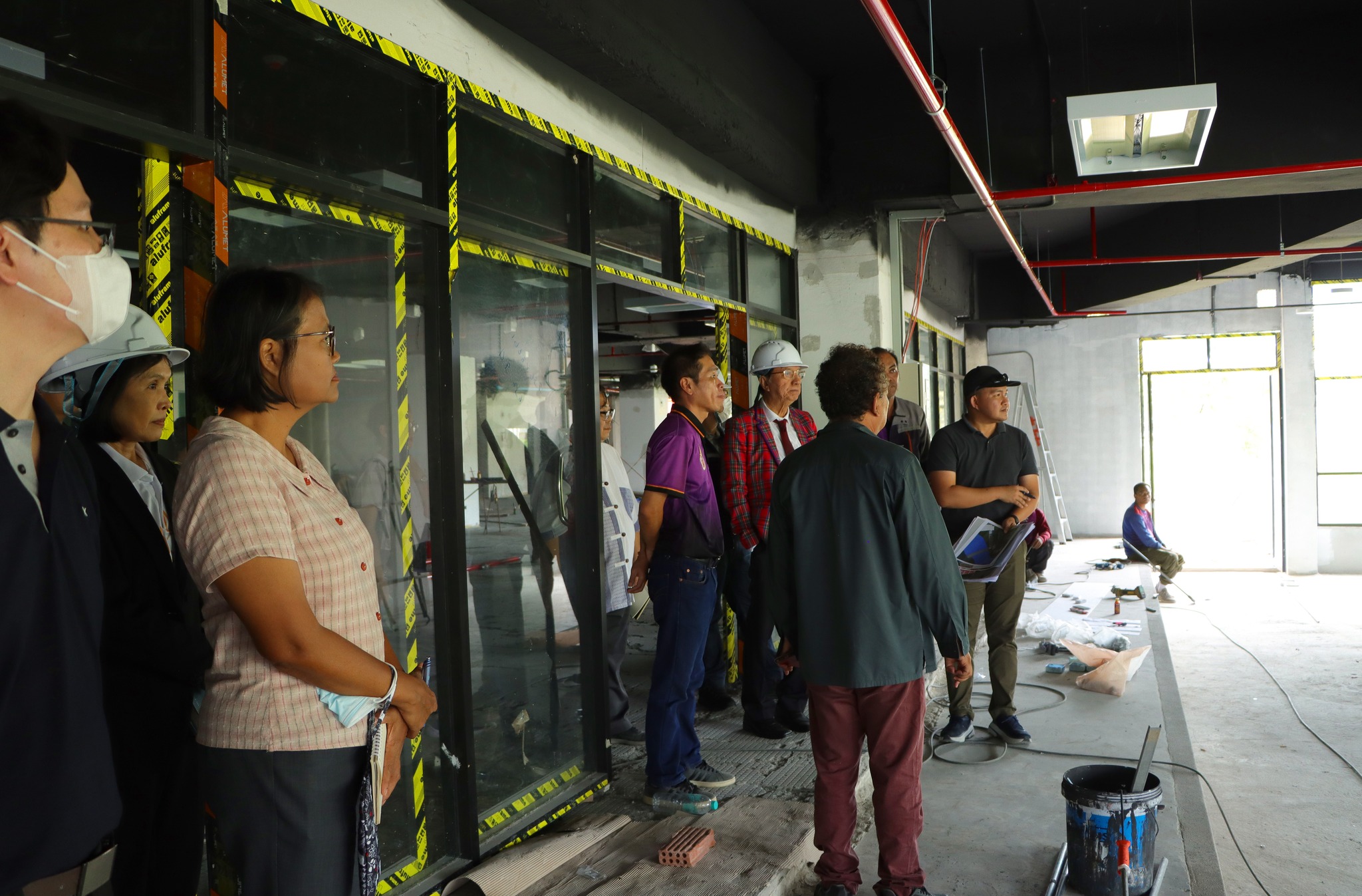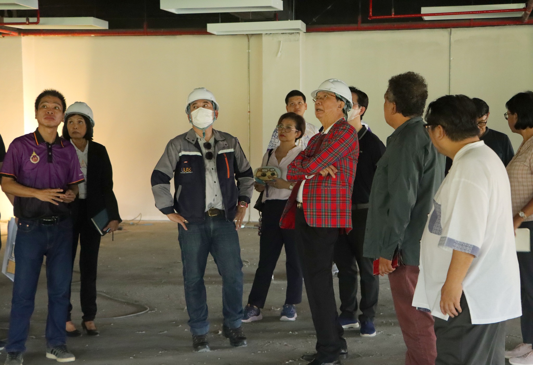 ในการลงพื้นที่ ท่านอธิการบดีได้ตรวจสอบพื้นที่ก่อสร้างทั้งภายนอกและภายในอาคาร เพื่อติดตามความคืบหน้าของการดำเนินงาน ตลอดจนประเมินความสอดคล้องกับแผนการปรับปรุงที่วางไว้ ทั้งด้านความปลอดภัย โครงสร้างพื้นฐาน และการใช้งานพื้นที่ในอนาคต นอกจากนี้ ท่านยังได้ให้ข้อเสนอแนะที่เป็นประโยชน์อย่างยิ่งต่อการออกแบบและตกแต่งภายในอาคารบรรณสารฯ โดยเน้นให้พื้นที่มีความทันสมัย รองรับการใช้งานของผู้เรียนและบุคลากรอย่างมีประสิทธิภาพ อีกทั้งให้ความสำคัญกับบรรยากาศที่เอื้อต่อการเรียนรู้แบบร่วมสมัย เพื่อให้ศูนย์บรรณสารฯ สามารถเป็นพื้นที่กลางทางวิชาการที่ตอบโจทย์การใช้งานในยุคดิจิทัล