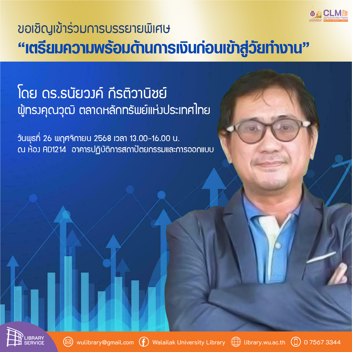 ขอเชิญชวนนักศึกษาและผู้สนใจทุกท่าน! เข้าร่วมฟังการบรรยายพิเศษจากผู้เชี่ยวชาญ เพื่อติดอาวุธความรู้ด้านการเงินก่อนก้าวเข้าสู่โลกของการทำงานจริง