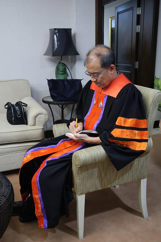 แล้วมีคนค้นนี้ที่ท่านอธิการบดี สมบัติ ธำรงธัญญวงศ์ รายงานเบิกตัวผมเข้ารับปริญญาดุษฎีบัณฑิตกิตติมศักดิ์เมื่อปี ๒๕๖๐ ส่งมาให้ ที่เมื่อฟังอีกครั้งแล้วก็เกิดอาการเกร็งว่าอย่างนี้เลยหรือ เรานั้นน่าไม่ถึงครึ่งของที่ท่านอธิการบดีเบิกตัว …