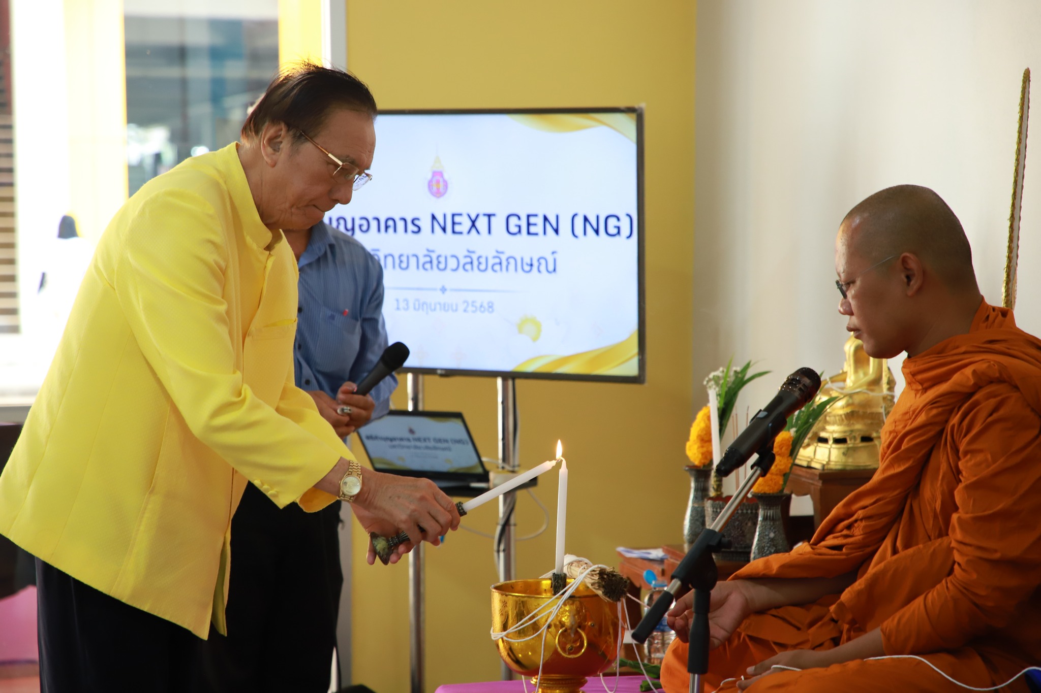 และได้จัดพิธีทำบุญเปิดอาคารเรียน NEXT GEN (NG) เมื่อวันที่ 13 มิถุนายน 2568 โดยศูนย์บริการการศึกษา มหาวิทยาลัยวลัยลักษณ์ โดย ศ.ดร.สมบัติ ธำรงธัญวงศ์ อธิการบดีเป็นประธานในพิธี พร้อมด้วย ผศ.ดร.นีรนาท แก้วประเสริฐ ระฆังทอง ผู้อำนวยการศูนย์บริการการศึกษา และผู้บริหารมหาวิทยาลัยวลัยลักษณ์ รวมถึงบุคลากรของมหาวิทยาลัยที่มาร่วมพิธี และพระอธิการวิรุฬห์ รกฺขิตธมฺโม เจ้าอาวาสวัดเสนาราม เจ้าคณะตำบลไทยบุรี และคณะสงฆ์วัดเสนาราม จำนวน 5 รูป สวดพระปริตร เจริญพระพุทธมนต์ เพื่อให้อาคารเรียน NEXT GEN (NG) แห่งนี้เป็นพื้นที่ที่จะทำให้นักศึกษาได้สัมผัสกับสภาพแวดล้อมการเรียนที่เต็มไปด้วยเทคโนโลยีและการออกแบบที่รองรับการเรียนรู้ในยุคใหม่ พร้อมให้การสนับสนุนในทุก ๆ ด้านของการศึกษาที่ออกแบบมาเพื่อรองรับการเรียนการสอนในยุคดิจิทัลอย่างเต็มรูปแบบ (Thananya Nakpang, 2568)