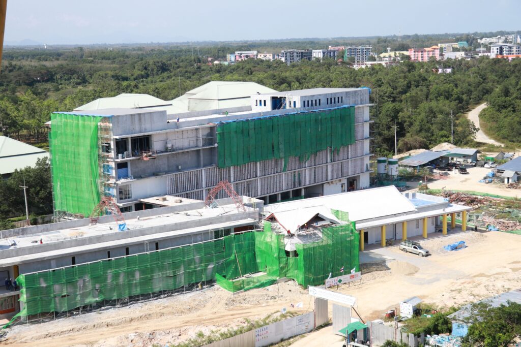 ศาสตราจารย์ ดร. สมบัติ ธำรงธัญวงศ์ อธิการบดีมหาวิทยาลัยวลัยลักษณ์ กล่าวว่า มหาวิทยาลัยวลัยลักษณ์ มีหลักสูตรการเรียนการสอนทางด้านวิทยาศาสตร์สุขภาพครอบคลุมทั้งสำนักวิชาแพทยศาสตร์ พยาบาลศาสตร์ สหเวชศาสตร์ เภสัชศาสตร์ สาธารณสุขศาสตร์ วิทยาลัยทันตแพทยศาสตร์นานาชาติ และวิทยาลัยสัตวแพทยศาสตร์อัครราชกุมารี โดยเฉพาะสำนักวิชาแพทยศาสตร์ เราเปิดมาแล้ว 13 ปี และมีชื่อเสียงในภาคใต้ สำหรับการก่อสร้างโรงพยาบาลศูนย์การแพทย์มหาวิทยาลัยวลัยลักษณ์ขนาด 750 เตียง ด้วยงบประมาณ 5,600 ล้านบาท ขณะนี้การก่อสร้างใกล้เสร็จสมบูรณ์ และจะเป็นโรงพยาบาลที่ทันสมัยที่สุดในภาคใต้ตอนบน โดยในปี 2565 จะแล้วเสร็จ 419 เตียง เมื่อรวมกับอาคารสงฆ์อาพาธที่มูลนิธิศรีธรรมราชาจะก่อสร้างอีก 94 เตียง ก็จะสามารถให้บริการได้กว่า 500 เตียง และคาดว่าจะมีผู้มาใช้บริการประมาณปีละกว่า 600,000 คน