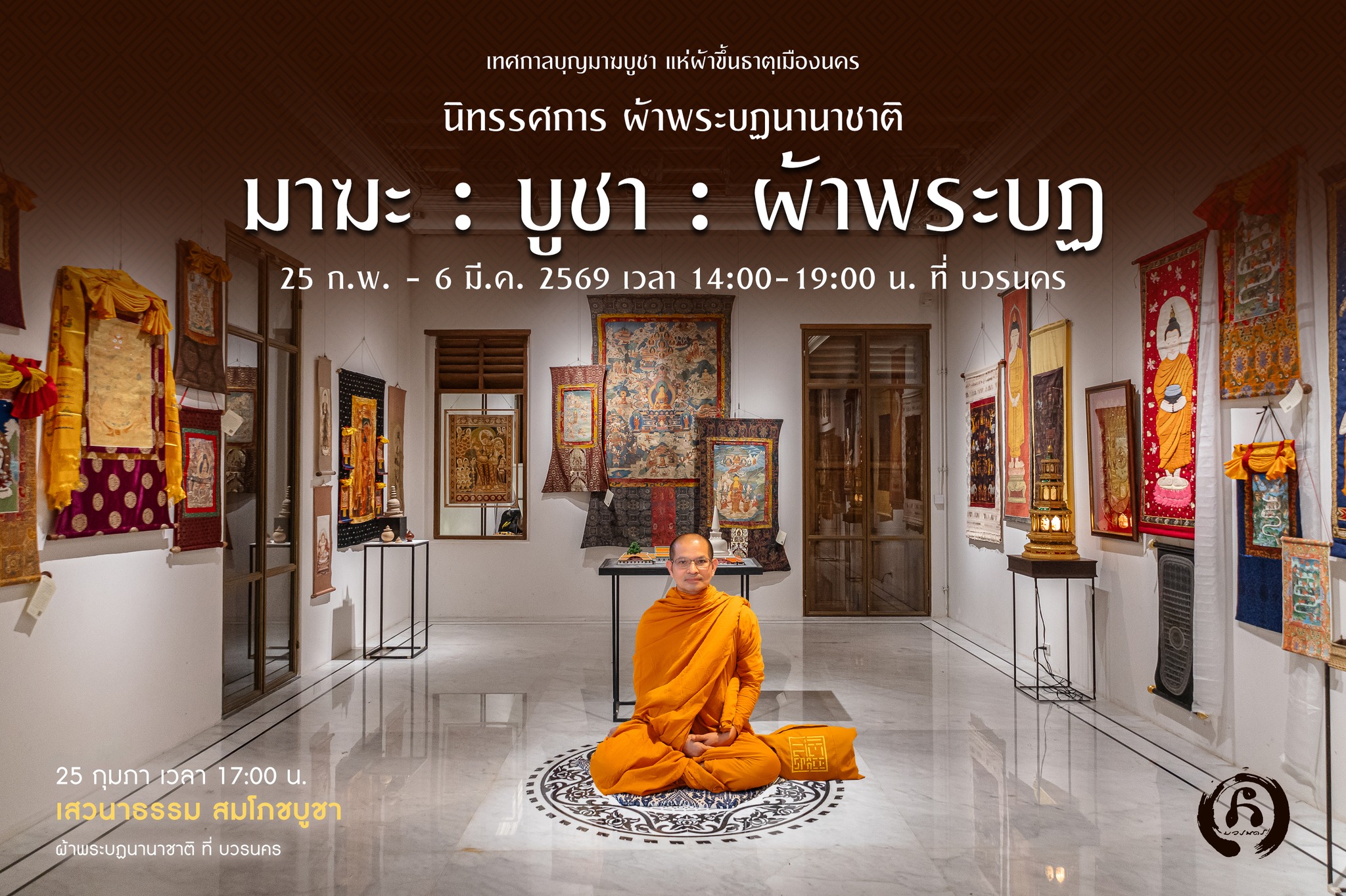 กิจกรรมหลักของนิทรรศการชุดหัวใจพุทธศาสนาในผ้าพระฎนานาชาติ หรือ กิจกรรมสมโภชผ้าพระบฏพระราชทาน ในปีนี้ไม่ได้จัด แต่มี บวรนคร ได้จัดกิจกรรมนี้ในวันที่ ๓ กุมภาพันธ์ ๒๕๖๘ เวลา ๑๕.00 น. ที่ #บวรนคร โดยจะเปิด #นิทรรศการหัวใจพุทธศาสนาในผ้าพระบฏนานาชาติ ร่วมสวดมนต์สาธยายบท #ปฏิจจสมุปบาทที่พระพุทธองค์ทรงตรัสรู้ แล้วสนทนาแลกเปลี่ยนท่ามกลางผ้าพระบฏนานาชาติร่วม ๑๐๐ ผืน ท่านที่สนใจ สามารถเข้าร่วมกัจกรรมนี้ได้ที่ บวรนคร (Bunchar Pongpanich, ๒๕๖๘)