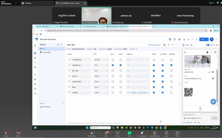 หลักสูตรหลักสูตร การใช้งาน AppSheet สร้างระบบการลงทะเบียนพร้อมสร้าง Barcode อัตโนมัติ วันอังคาร ที่ 17 มิถุนายน 2568 เวลา 09.30 น.-11.00 น. อบรมผ่าน Zoom Meetingวิทยากร คุณชัชสันต์ จันทร์เรืองฤทธิ์ มีผู้เข้าร่วมอบรม