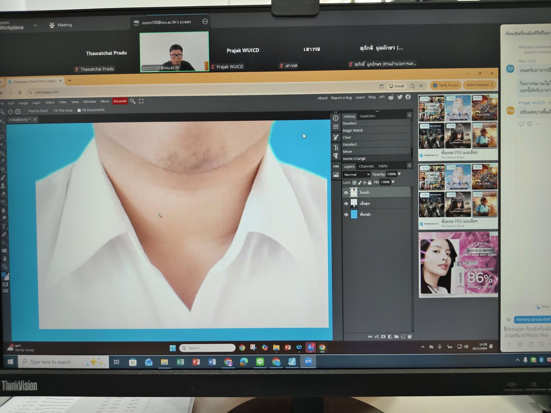 หลักสูตรเรียนรู้เครื่องมือที่ใช้ในการออกแบบและตกแต่งภาพ ด้วยฟรีแวร์ Photo Pea วันอังคาร ที่ 20 มกราคม 2569 เวลา 13.30-15.00 น. อบรมผ่าน Zoom Meeting วิทยากรคุณ เขมชาติ เสมแดง มีผู้เข้าร่วมอบรม จำนวน 3 ท่าน