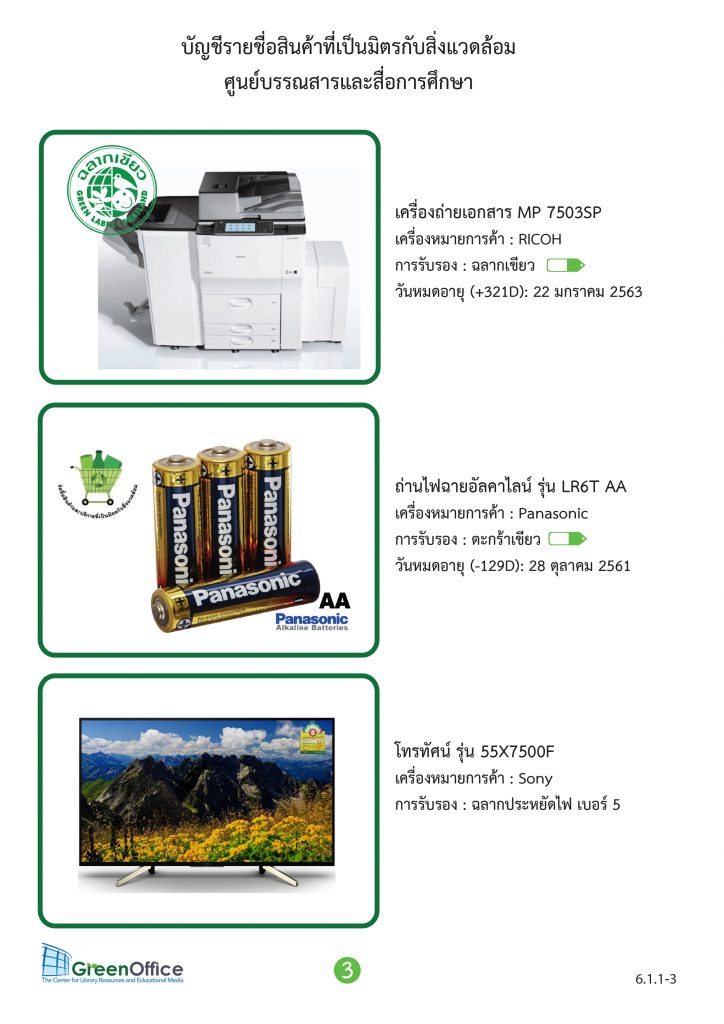 รวมทั้งได้จัดทำบัญชีรายชื่อสินค้าที่เป็นมิตรกับสิ่งแวดล้อมกับสินค้าที่ใช้จริงในสำนักงาน