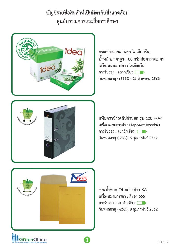 รวมทั้งได้จัดทำบัญชีรายชื่อสินค้าที่เป็นมิตรกับสิ่งแวดล้อมกับสินค้าที่ใช้จริงในสำนักงาน