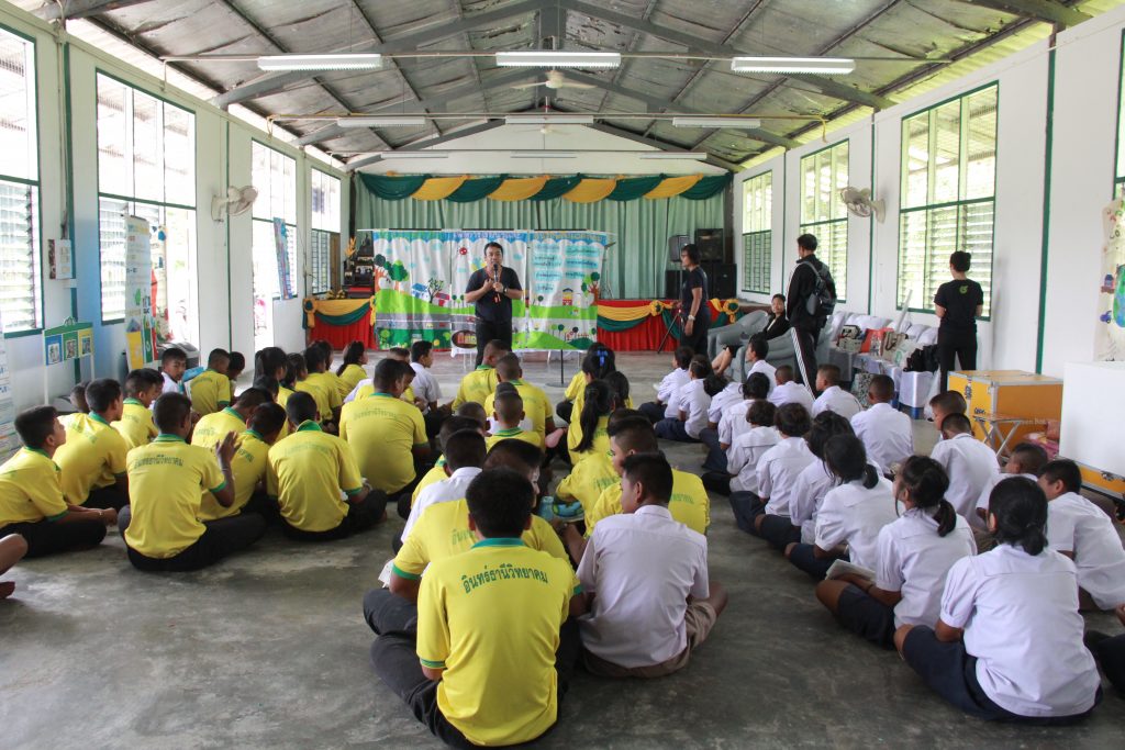 7 กรกฎาคม 2560 โรงเรียนแรกของเราที่ให้บริการความรู้ “ห้องสมุดสีเขียว เพื่อการเรียนรู้และอนุรักษ์สิ่งแวดล้อมของชุมชน” เราค่อนข้างตื่นเต้นกับการออกให้ความรู้เป็นครั้งแรก โชคดีเราเจอเด็กน้อย แค่ 87 คน โรงเรียนอินทร์ธานีวิทยาคม เป็นโรงเรียนระดับมัธยม ในอำเภอปากพนัง แต่เด็กน้อยมาก เพราะเด็กเข้าไปเรียนในตัวเมืองหมด เห็นแล้วก้อใจหาย อาคารดูเก่า และไม่มีชีวิตชีวาเพราะเด็กลดลง แต่สิ่งที่เขามีคือการลดขยะ อยากให้เด็ก ๆ แยกขยะเป็น เราได้เวลาเต็มวัน 09.00 -16.00 น. ใช้เวลาได้เต็มที่ทั้งเนื้อหาและนันทนาการ รู้สึกไม่เ้ครียด เด็ก ๆ น่ารัก มีหนีบ้างแต่ไม่หลับ ตั้งใจซึมซับในสิ่งที่เราให้ เวลาก้อเหมาะสม ผู้บริหารให้ความสำคัญกับกิจกรรมนี้ มีการเปิดงานเป็นทางการ และอาจารย์ดูแลเราอย่างใกล้ชิด ขอบคุณสำหรับบทเรียนโรงเรียนแรกของเรา…….
