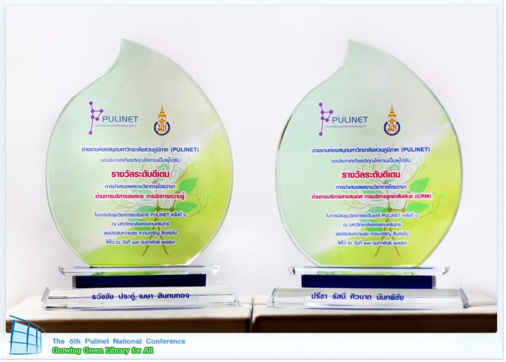 โล่ห์รางวัลจากการนำเสนอผลงานในการสัมมนา PULINET วิชาการ