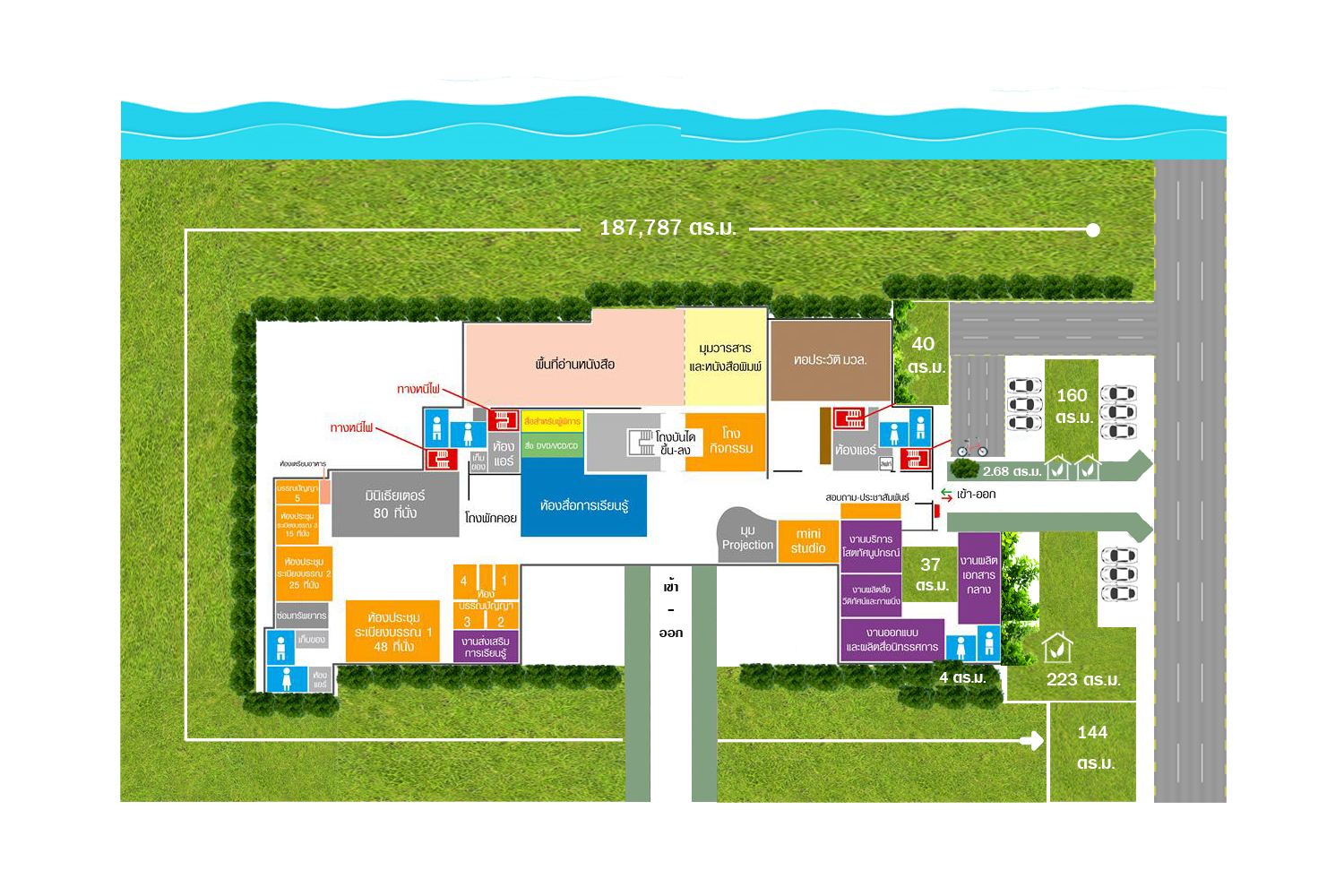 5. สนามรอบอาคารติดริมคลองทั้งสามด้าน ขนาด 18,787 ตารางเมตร