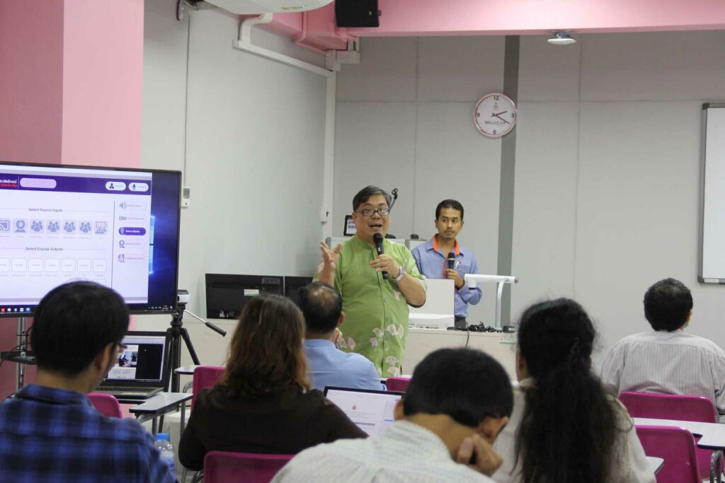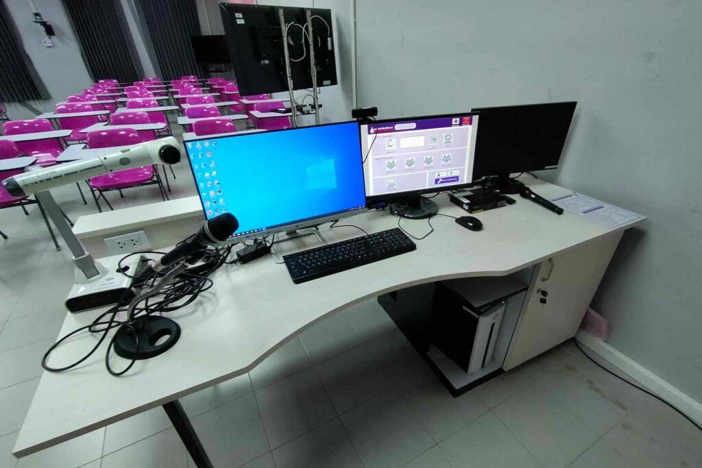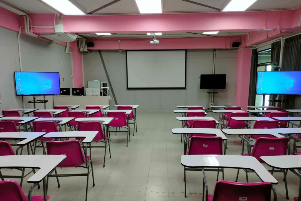 รูปแบบห้องเรียน Advance Smart Classroom ห้องเรียน Advance Smart Classroom มีระบบที่รองรับการเรียนการสอนในระดับห้องเรียนพื้นฐาน มีคุณลักษณะเพิ่มเติมคือรองรับการเรียนออนไลน์เต็มรูปแบบ (Fully eLearning) รองรับการเรียนรู้บนอุปกรณ์เคลื่อนที่ เรียนได้ทุกที่ ทุกเวลา (Mobile Learning: Anywhere Anytime) เพื่อเสริมประสบการณ์การเรียนรู้แบบร่วมมือ (Collaborative Learning Experience) สภาพแวดล้อมการเรียนรู้ ลักษณะของห้องเรียน จำนวน 4 ห้อง มีระบบพื้นฐานของห้องเรียนระดับบกลาง รองรับการใช้งานบนอุปกรณ์เคลื่อนที่ (Mobile Device) มีโปรแกรมประยุกต์เพื่อการจัดการอุปกรณ์เคลื่อนที่ (Mobile Device Management Application) สามารถจัดกลุ่มประชุม มีจอมอนิเตอร์ LED ขนาด 49 นิ้วรองรับการนำเสนอทั้ง 4 กลุ่มเป็นอิสระสามารถสลับหน้าจอเพื่อนำเสนอได้ และมีระบบจัดประชุมทางไกล (Tele Conferences) มีกล้อง Smart Tracking ติดตามผู้บรรยายหน้าชั้นเรียนได้