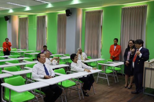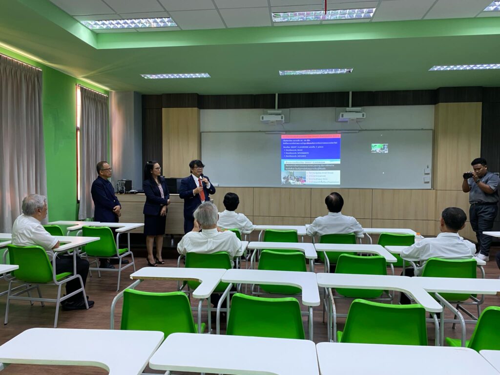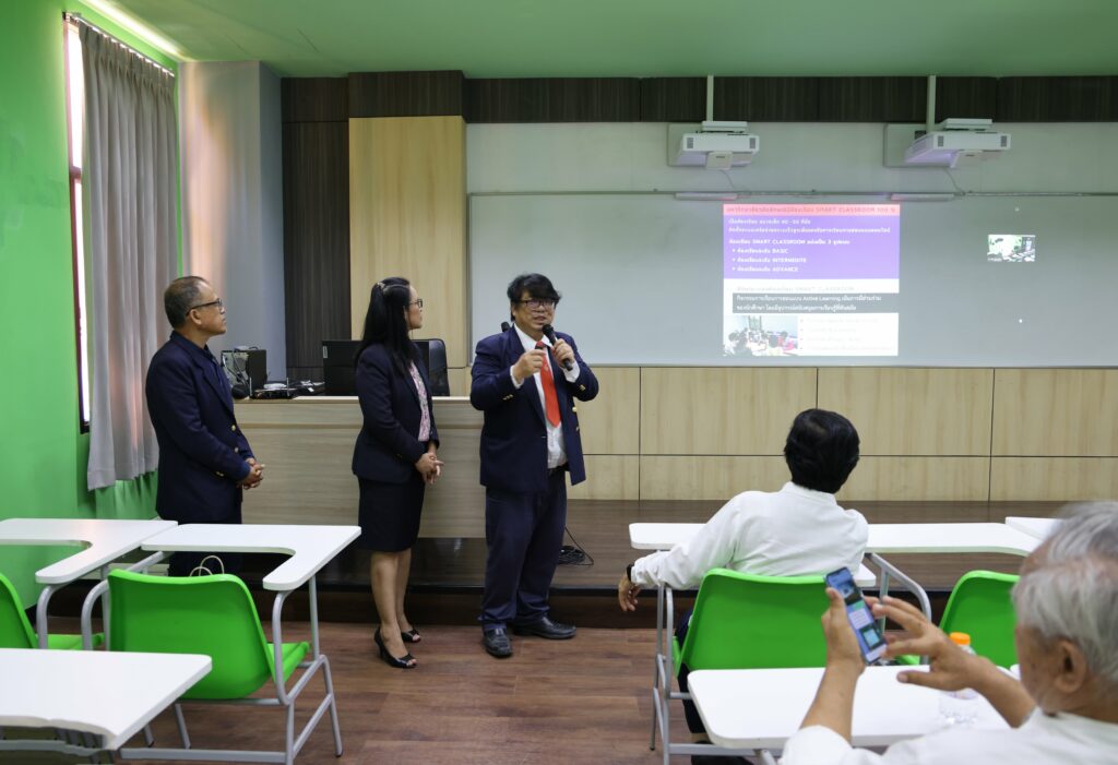 ในการนี้ รศ.ดร.สุรินทร์ ไหมศรีกรด รองอธิการบดี ผศ.ดร.ศิวนาท นันทพิชัยและผศ.ดร. นีรนาท แก้วประเสริฐ ระฆังทอง ได้บรรยายถึงภาพรวมการเรียนการสอนในห้องเรียน Smart Classroom ของมหาวิทยาลัยรวมทั้งการสนับสนุนการเรียนรู้ในรูปแบบต่าง ๆ ทั้งนี้ห้องเรียน Panorama Smart Classroom มีลักษณะพิเศษ คือมีจอแบบ Ultra wide มีเครื่องฉายโปรเจคเตอร์ 2 ตัวรองรับชิ้นงานขนาดกว้างเป็นพิเศษเพื่อสนับสนุนการนำเสนอในลักษณะพิเศษต่าง ๆ รวมทั้งมีกล้องติดตามตัว Auto Tracking Camera ควบคุมการทำโดยอัตโนมัติ สามารถสะท้อนหน้าจองานใน IPAD ด้วยอุปกรณ์ Apple TV พร้อมทั้งมีอุปกรณ์สนับสนุนการเรียนรู้อย่างครบครันรองรับการเรียนการสอนในรูปแบบต่าง ๆ