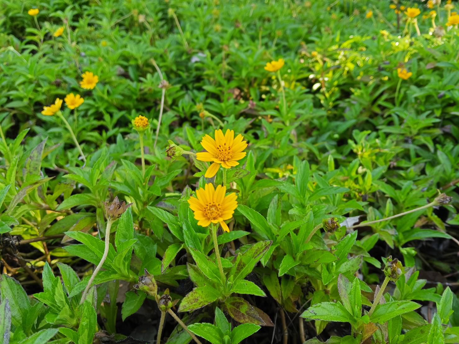 ชื่อสามัญ Creeping daisy, Climbing wedelia, Trailing daisy, Singapore daisy, Rabbits paw
