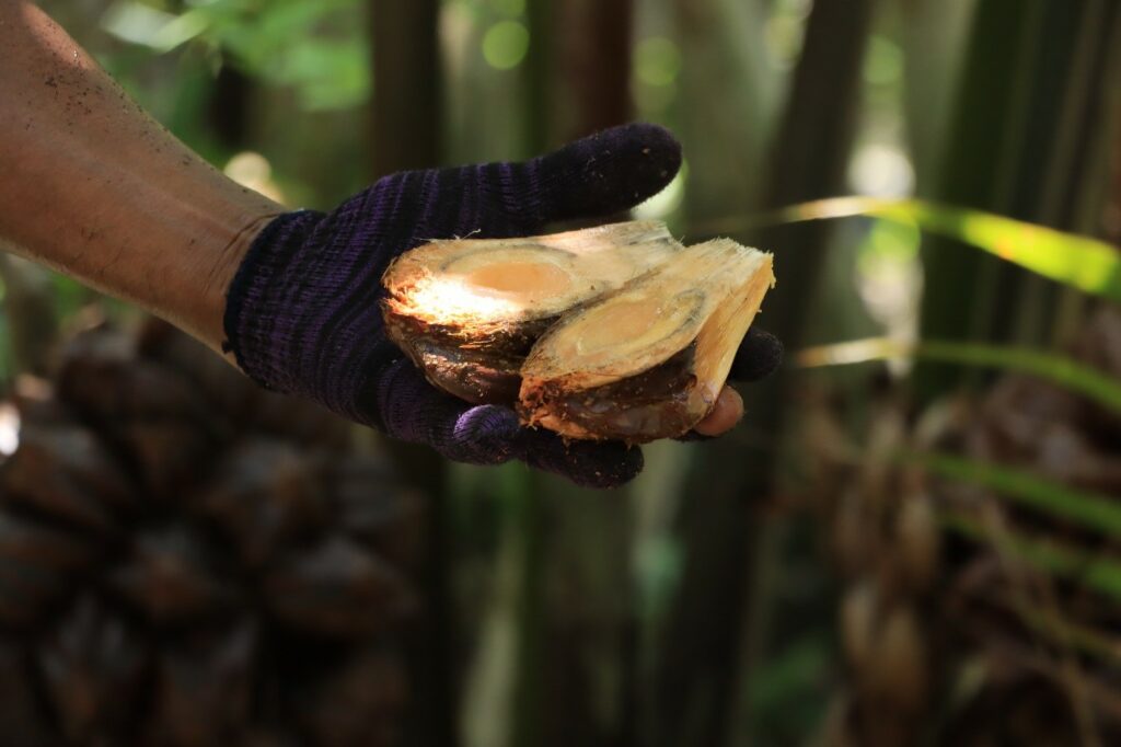 11. ออกหน่อ ลูกที่ร่วงหลุดออกจากทะลายจากจะร่วงลงน้ำ และแตกหน่อ สามารถนำไปขยายพันธุ์ได้