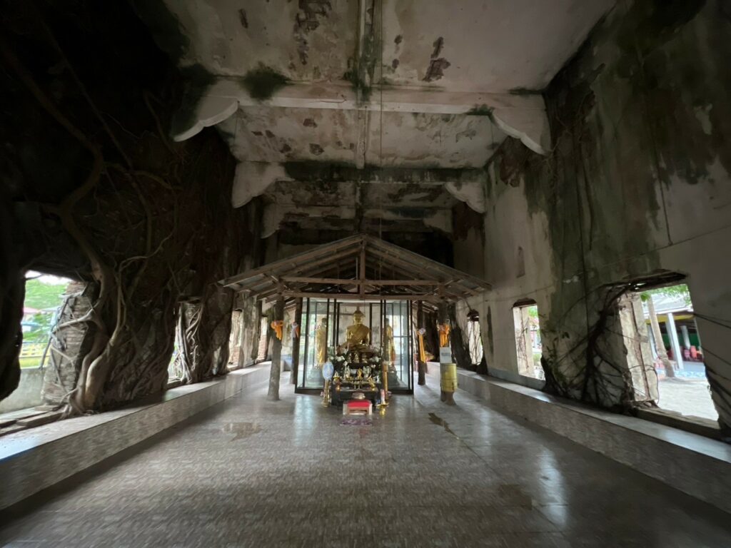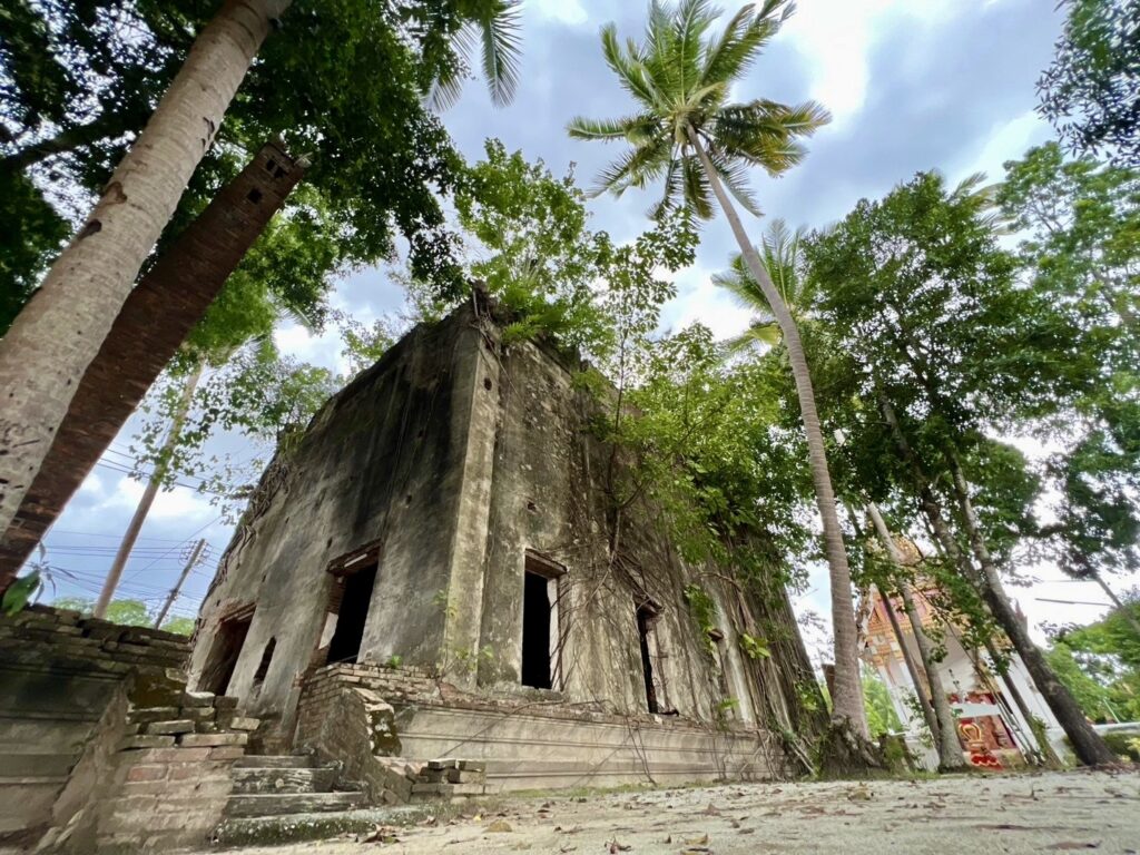 อุโบสถหลังเก่า ของวัดไพศาลสถิตย์ในตำบลปากพูน อำเภอเมือง จังหวัดนครศรีธรรมราช มีลักษณะพิเศษที่โดดเด่นคือ ถูกปกคลุมไปด้วยรากโพธิ์และรากไทรที่เติบโตขึ้นไปพร้อมกับตัวโบสถ์ ต้นโพธิ์และต้นไทรต่างพึ่งพาอาศัยซึ่งกันและกันอย่างน่าอัศจรรย์ ต้นโพธิ์และต้นไทรได้อาศัยตัวโบสถ์เป็นฐานยึดเกาะเพื่อให้ลำต้นสามารถเติบโตและไต่ขึ้นไปหาแสงแดด ส่งผลให้เกิดความงดงามตามธรรมชาติที่ผสมผสานกันอย่างลงตัว รากไทร ได้แผ่ขยายและปกคลุมไปทั่วตัวโบสถ์ ทำให้โบสถ์ได้รับการพยุงและป้องกันไม่ให้ทรุดลงมา นอกจากนี้ยังสร้างความแข็งแรงให้กับโครงสร้างของอุโบสถ