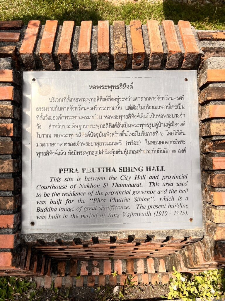 และในจดหมายเหตุครั้งพระบาทสมเด็จพระมงกุฎเกล้าเจ้าอยู่หัว เสด็จประพาสเมืองนครศรีธรรมราชใน พ.ศ. 2458 ได้กล่าวถึงหอพระสิหิงค์ตอนหนึ่ง ความว่า