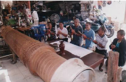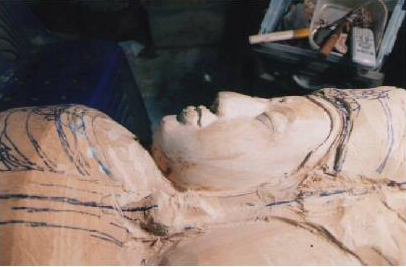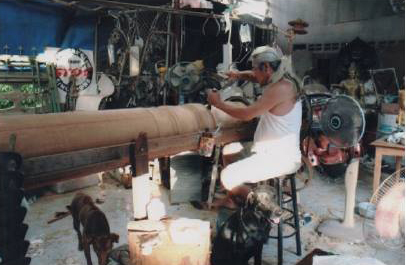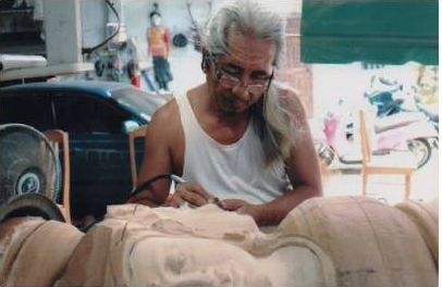ภาพการแกะสลักไม้ตะเคียนเป็นไม้เสาหลักเมืองโดย อ.พรชัย วัฒนวิกย์กิจ