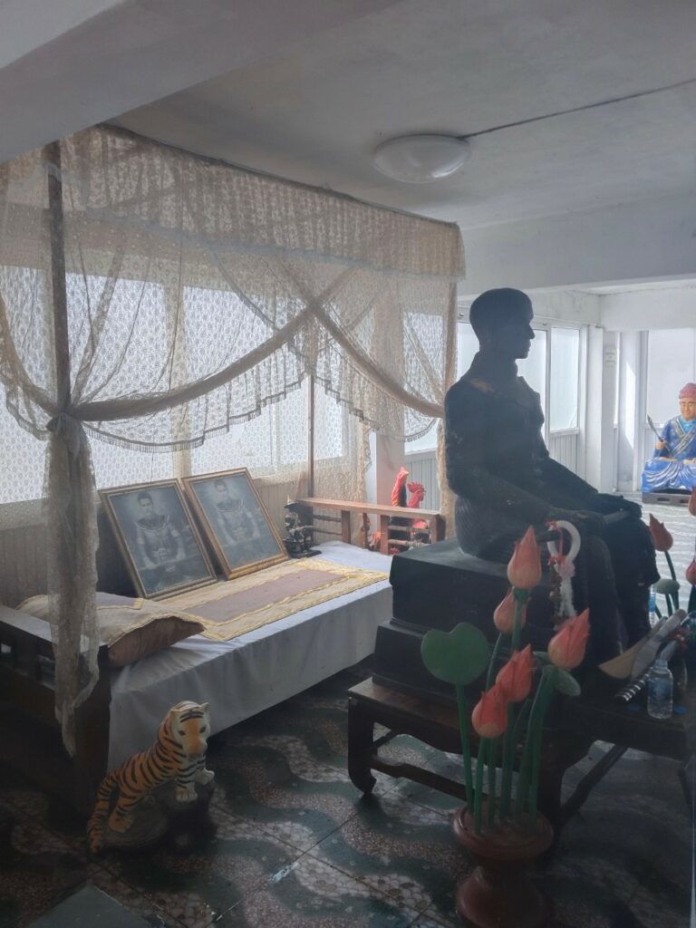โดยด้านหลังของอนุสาวรีย์ของพระองค์นั้น มีการสร้างวิหาร 2 ชั้น ที่กำลังดำเนินการจัดสร้าง ซึ่งบริเวณชั้นบน จะเป็นอุโบสถที่มีพระประธานองค์ใหญ่ประดิษฐานอยู่ และบริเวณชั้นล่าง จะใช้เป็นสถานที่ประกอบพิธีกรรมทางพระพุทธศาสนา ภายในวิหารด้านล่างนั้นจะมีพระพุทธรูปหลายองค์จัดเรียงไว้โดยรอบ บริเวณด้านหลังจะมี “รูปปั้นพระพิฆเนศ กับเจ้าแม่สร้อยมาลา” ที่ตั้งไว้ให้ผู้คนได้ไหว้ขอพร และ ติดกันจะมี “รูปปั้นของสมเด็จพระเจ้าตากสินมหาราช” ประดิษฐานอยู่ และมีพระแท่นบรรทมของพระองค์ ตั้งไว้ด้านหลังพระบรมรูปของพระองค์ด้วย