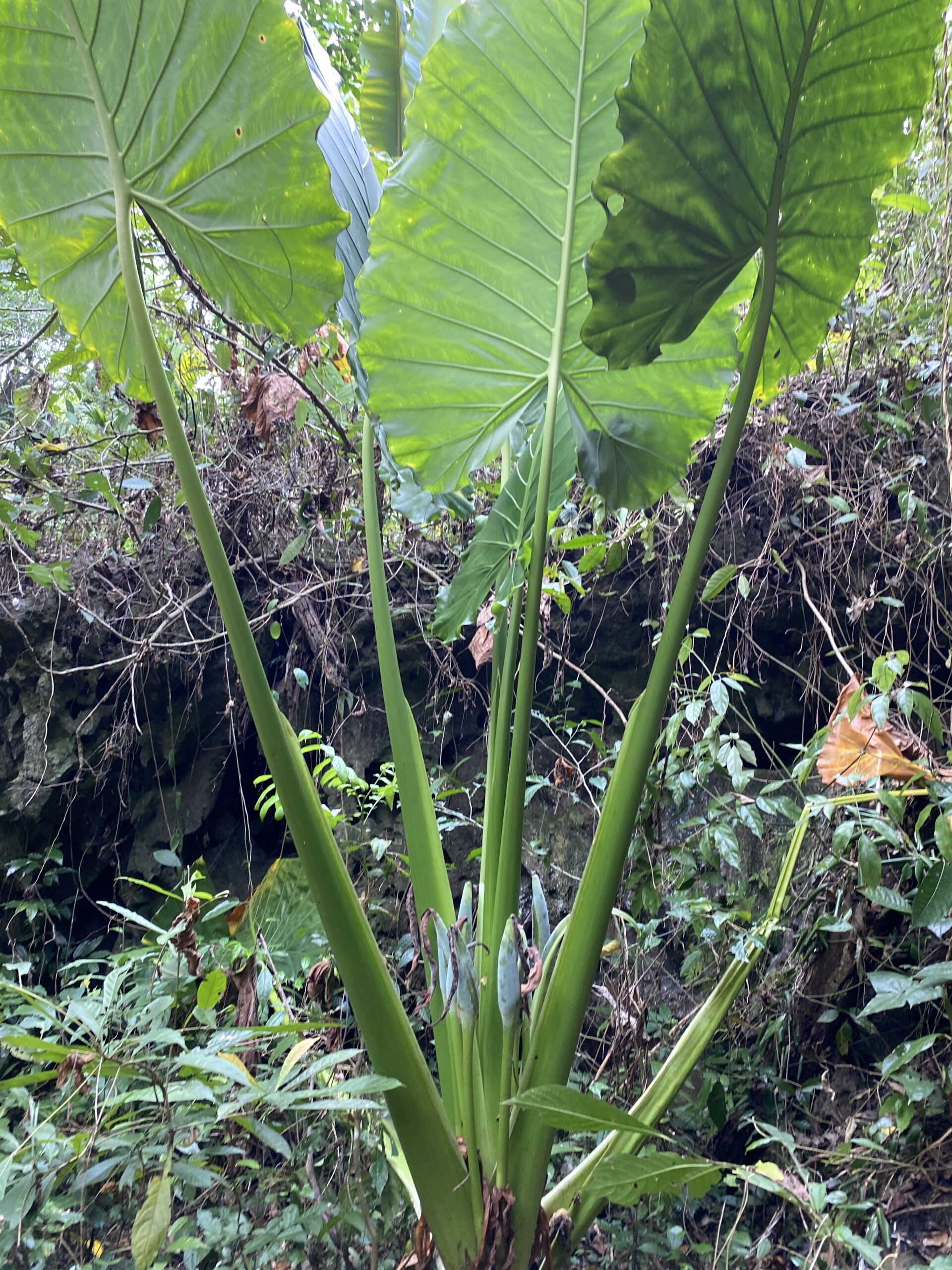 - ลำต้น ลักษณะคล้ายปาล์ม สูง 30-40 ซม. ลำต้นเหนือดินมีลักษณะกลมชุ่มน้ำ มีหัวคล้ายรากแทงลึกลงไปในดิน 10-30 ซม. ตรงหัวจะมีรากเล็กๆ ลึกลงไปในดินอีกรากหนึ่ง ซึ่งจะมีลักษณะคล้ายกับสากตําข้าว หรือเป็นรูปไข่กลมรี