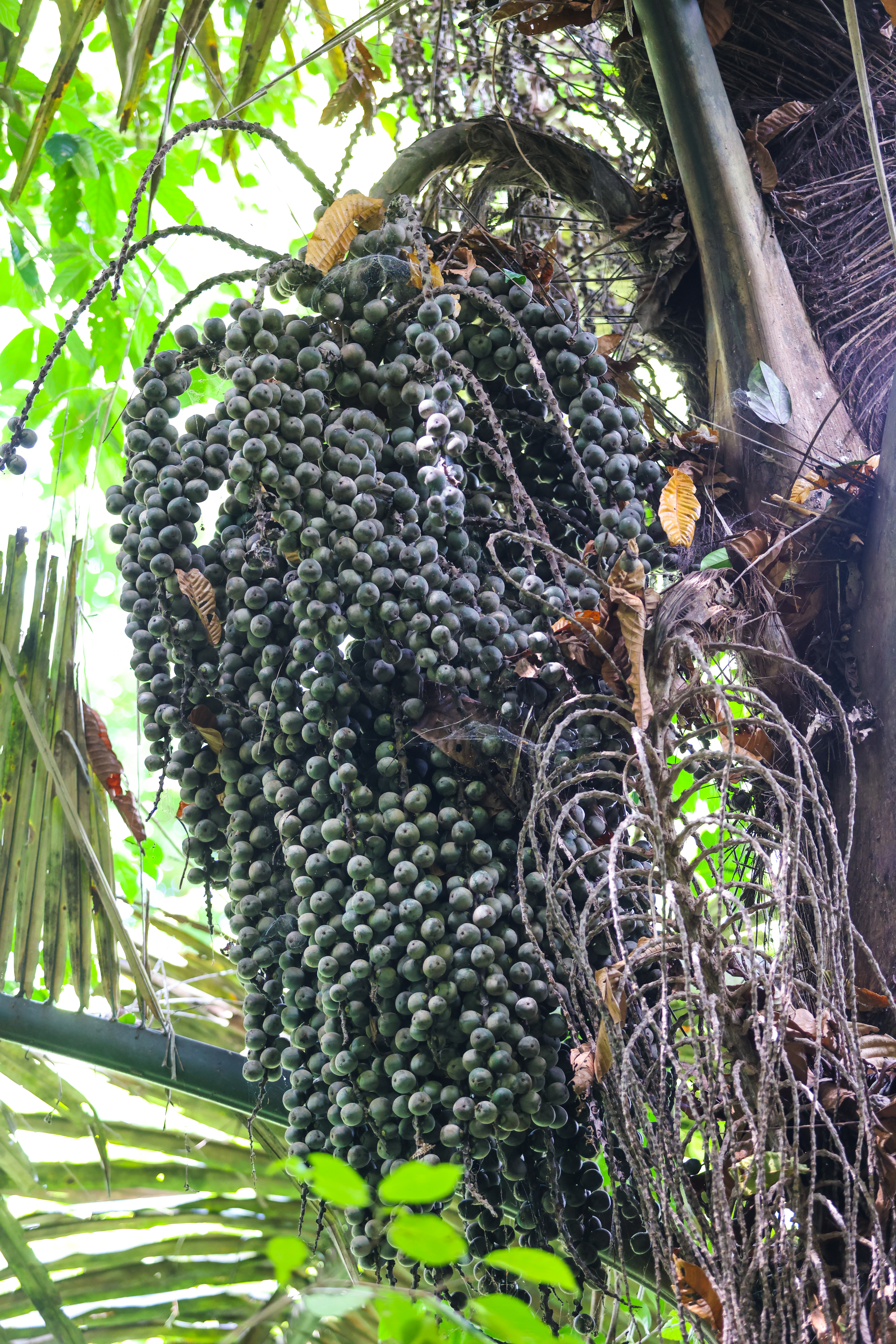 - ผล ผลสดแบบมีเนื้อเมล็ดเดียว ออกเป็นพวงๆ ทรงกลม ขนาด 2 เซนติเมตร ผลสุกสีแดงคล้ำ