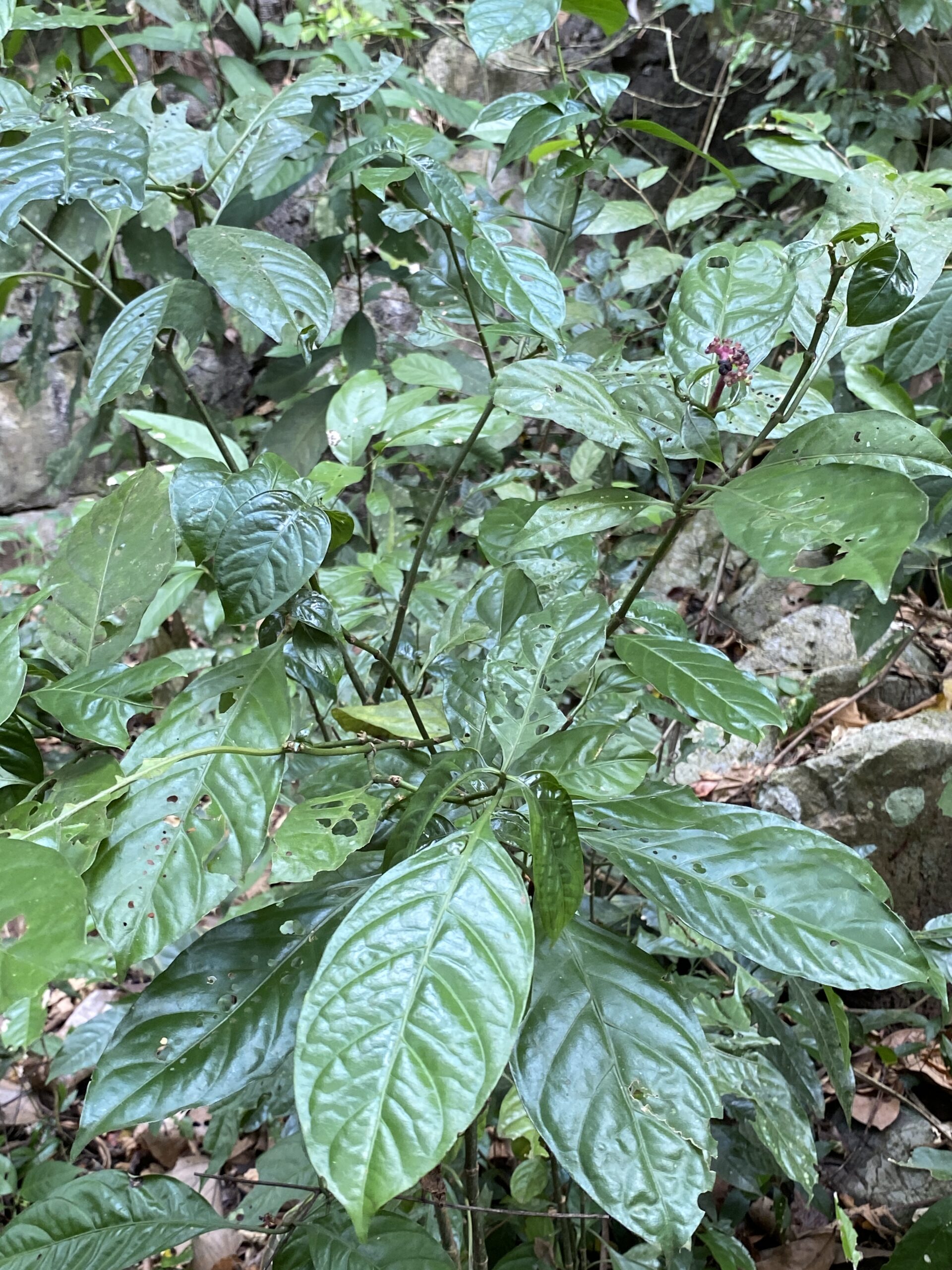 ลำต้นสูงประมาณ 2 เมตร แผ่กิ่งก้าน เป็นทรงพุ่มขนาดเล็ก ขึ้นได้ทุกพื้นที่ที่อุ้มน้ำได้ดี แต่ไม่ชอบ น้ำขัง ชอบขึ้นแซมในป่าสวนยาง หรือขึ้นแซมตามร่องสวน