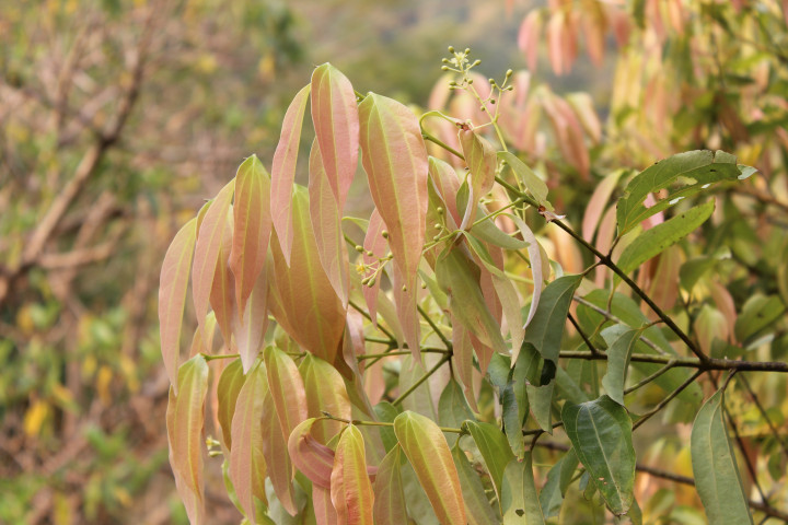 - ยอดอ่อน เป็นสีแดงหรือสีเขียวอมขาวอ่อน ๆ ดอก ออกดอกเป็นช่อกระจะที่ปลายยอด