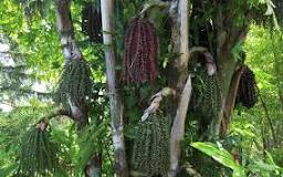 - ผล อ่อนสีเขียวมีลักษณะคล้ายผมดอกเข็ม ผลเมื่อสุกจะมีสีดำ