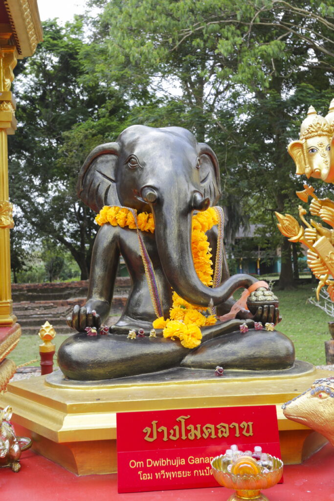 พระพิฆเนศที่วัดโมคลาน มีการสร้างพระพิฆเนศไว้ 9 ปาง โดยผู้มีจิตศรัทธาสร้างให้ และมีปางโมคลาน คือปางที่ค้นพบเมื่อครั้งกรมศิลปากรมาสำรวจโบรารณสถานโมคลาน องค์ที่อยู่ในวัดโมคลานเป็นองค์จำลอง องค์จริงกรมศิลปากร นำไปเก็บไว้ที่พิพิธภัณฑ์สถานแห่งชาติแล้ว (พระอธิการนิติ นิปโก, การสื่อสารส่วนบุคคล, 17 กุมภาพันธ์ 2566)