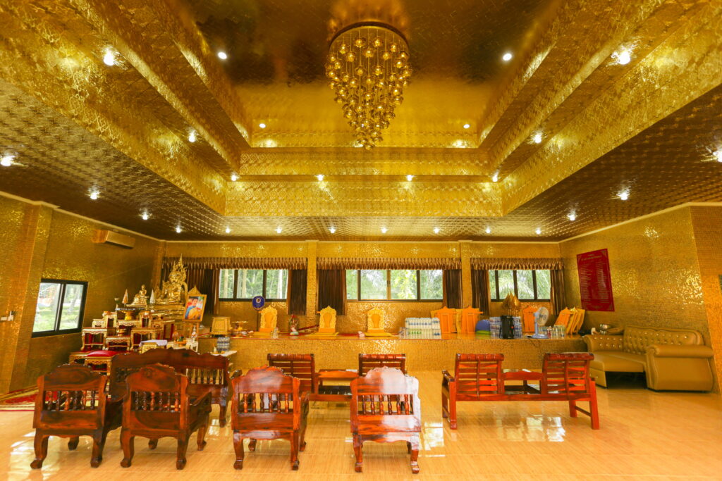 หอฉันท์เรือนทอง เกิดจากแนวคิดของเจ้าภาพที่ต้องการสร้างถวายวัด เจ้าภาพเคยสร้างหอฉันท์เรือนเงินมาแล้ว ให้กับวัดทางภาคเหนือ จึงเกิดแนวคิดสร้างเรือนทองขึ้นที่วัดโมคลาน โดยทุกสิ่งอย่างในหอฉันท์จะเป็นสีทองทั้งหมด ฝ้าเพดานใช้แผ่นทองคำเปลว ยกเว้นเก้าอี้ที่มีผู้บริจาคทีหลังเป็นสีไม้ สร้างเมือ ธันวาคม 2564 และได้สมโภชน์ไปเมื่อ 7 มกราคม 2566 (พระอธิการนิติ นิปโก, การสื่อสารส่วนบุคคล, 17 กุมภาพันธ์ 2566)