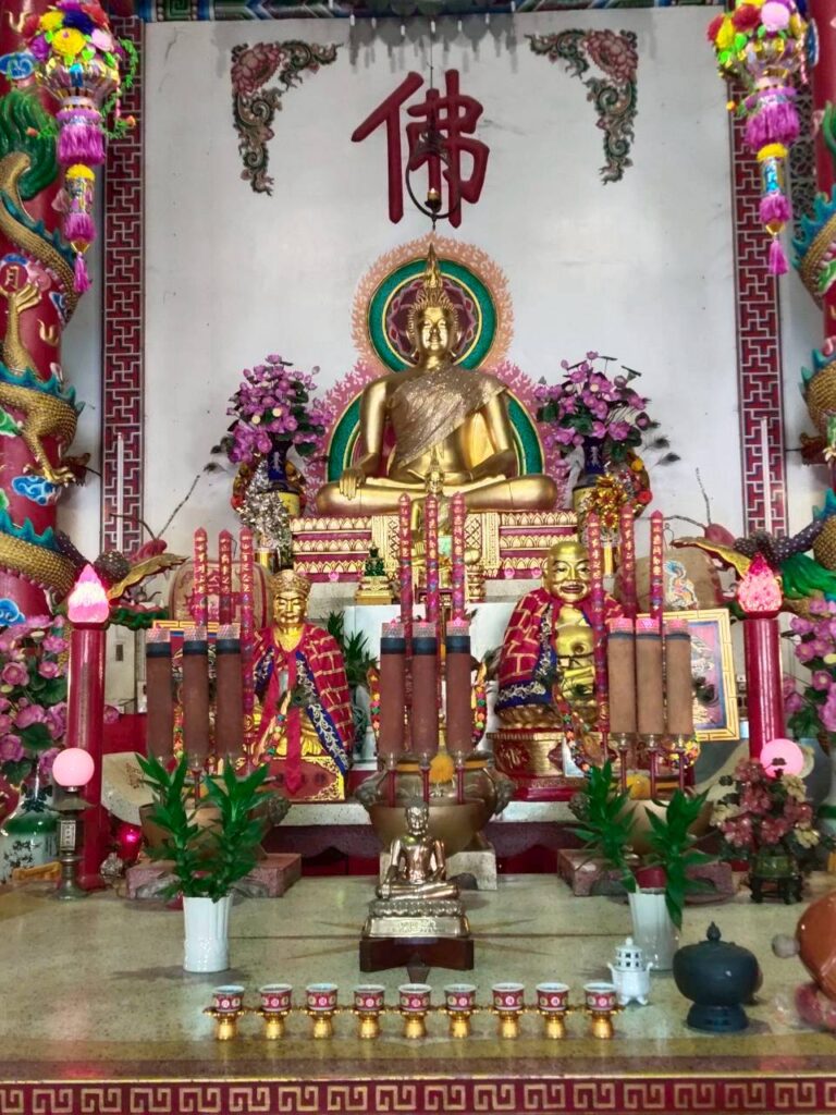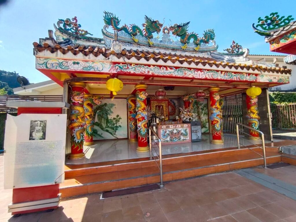 อาคารเฉลิมพระเกียรติสมเด็จพระเทพรัตนราชสุดาฯ สยามบรมราชกุมารี พระชนมายุ 5 รอบ 2 เมษายน 2558 อาคารที่ตั้งอยู่ตรงหน้าประตูของมูลนิธิซึ่งภายในศาลเจ้าก็จะมี “องค์หลวงพ่อโตหรือซำปอกง” ประดิษฐานเป็นองค์พระประธานมี องค์หลวงพ่อองค์เล็กและองค์หลวงพ่อโตองค์ใหญ่สร้างขึ้นมามีหน้าตักกว้าง 52 นิ้ว ชาวบ้านเชื่อถึงความศักดิ์สิทธิ์เข้ามานั่งสมาธิแล้วตั้งจิตใจอธิฐานขอพรให้สมหวังหรือประสพผลสำเร็จ เช่น เรื่องทำธุรกิจการค้าขายหรือสอบผ่านเพื่อเข้ารับราชการและขอเรื่องโชคลาภเป็นต้น นอกจากนี้ยังมี “เทพเจ้ากวนอูและศาลเจ้าพ่อเสือ” ด้วย (TrueID, 2568).