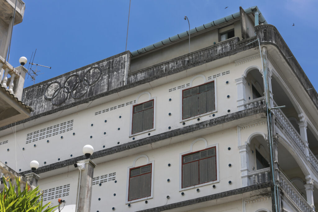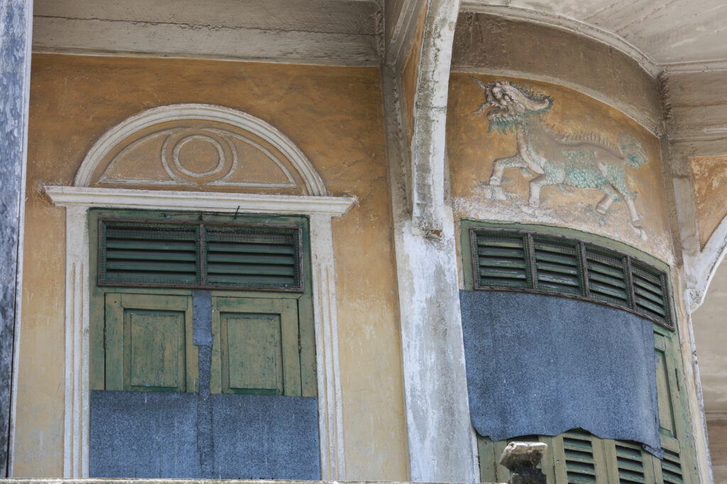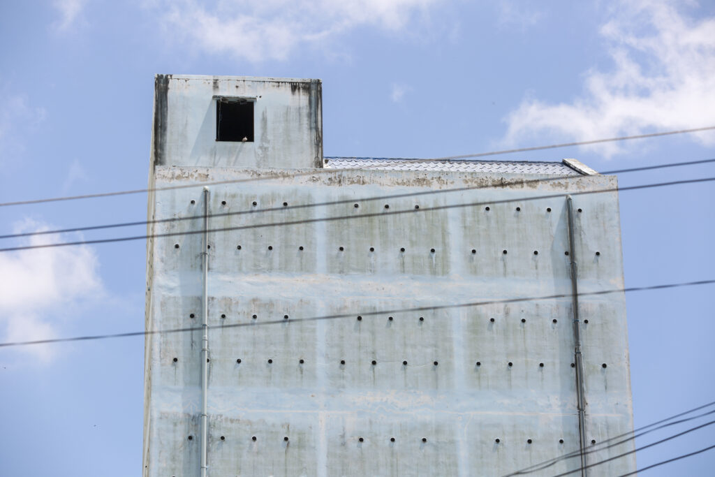 สำหรับอาคารหลังแรกที่พบว่ามีการเข้ามาตั้งถิ่นฐานของนกนางแอ่นในเมืองปากพนัง ตั้งแต่ พ.ศ. 2480 เป็นอาคารตึกสามชั้น ขื่ออาคาร “อื่นจีนกวง” ซึ่งเป็นตึกที่มีสถาปัตยกรรมศิลปะ “ชิโนโปรตุกีส” ตึกแรกและตึกเดียวในตลาดปากพนัง ตั้งอยู่บ้านเลขที่ 543/1 ถนนชายน้ำ บริเวณสี่แยกบางวำ เป็นหลังแรก โดยนกเริ่มบินเข้ามาอาศัยบริเวณ ชั้น 2 และชั้น 3 ของอาคาร ต่อมาเริ่มมีนกนางแอ่นเข้ามาอาศัยจำนวนเพิ่มมากขึ้น เจ้าของบ้านจึงได้ย้ายไปอาศัยอยู่ที่อื่น และต้องหยุดกิจการ และให้เป็นที่อาศัยของนกทั้งอาคาร