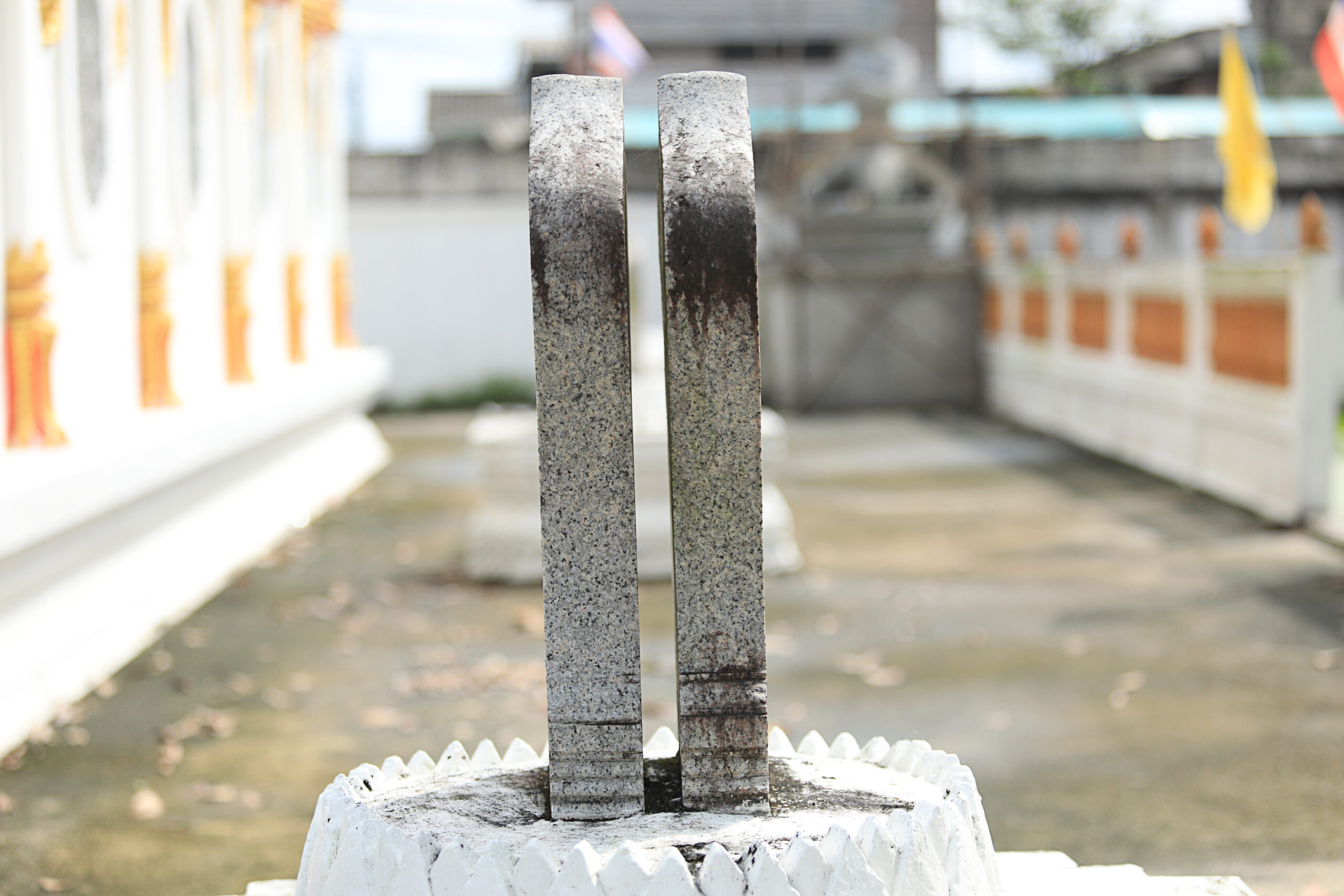 ใบเสมา ตั้งอยู่บนฐานบัว ถัดขึ้นไปทำเป็นรูปดอกบัวบาน ใบเสมา เป็นเสมาคู่ ประดิษฐานอยู่ภายในดอกบัว ภายในพระอุโบสถมีพระพุทธสิหิงค์เป็นพระประธาน ประดิษฐานอยู่ภายใต้ฉัตร 3 ชั้น