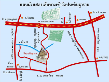 เชิญชวนเที่ยววัดประดิษฐาราม-วัดไสหร้า. (2561). แผนผังแสดงเส้นทางเข้าวัดประดิษฐาราม. สืบค้นเมื่อวันที่ 2 กันยายน 2568. จาก https://www.facebook.com/p/เชิญชวนเที่ยววัดประดิษฐาราม-วัดไสหร้า-100063003321663/