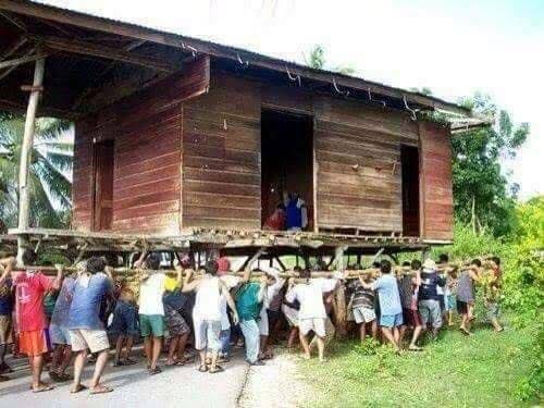 กรรมวิธี: ใช้ไม้ไผ่แก่จัด ปล้องใหญ่ แข็งแรง มีความยาวมากกว่าเริน สอดคานใต้ถุนมัดกับเชือกให้แน่น เวลาย้าย ยกขึ้นทั้งหลัง แบกแล้วเดินไปพร้อมกัน ต้องมีการส่งเสียงบอกไปตลอดทาง เมื่อถึงที่ตั้งใหม่ ก็วางเรินทั้งหลังบนเสา หรือบนตีนเสาที่เตรียมไว้เหมือนเดิม ขนาดเดิม