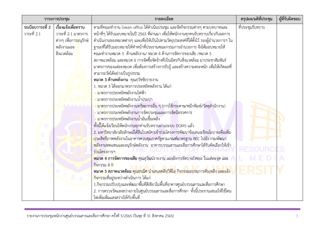 รายงานการประชุมพนักงาน