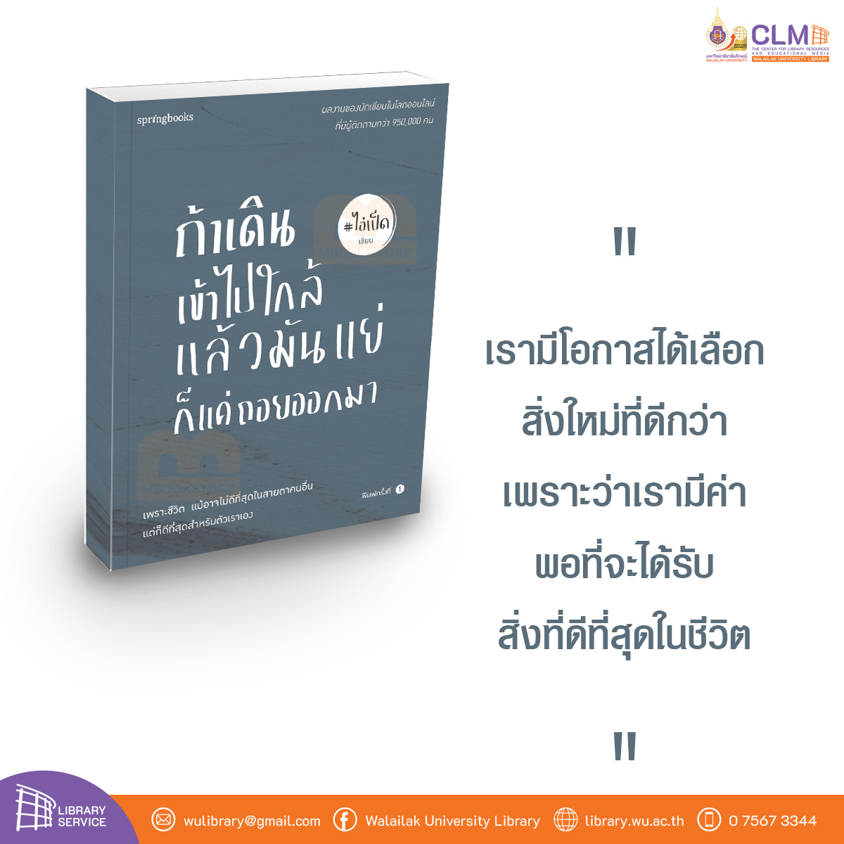 ทางห้องสมุดขอแนะนำหนังสือ “ถ้าเดินเข้าไปใกล้แล้วมันแย่ ก็แค่ถอยออกมา” ผลงานของนักเขียนในโลกออนไลน์ ที่มีผู้ติดตามในเฟซบุ๊กกว่า 947,337 คน มาฝากคะ