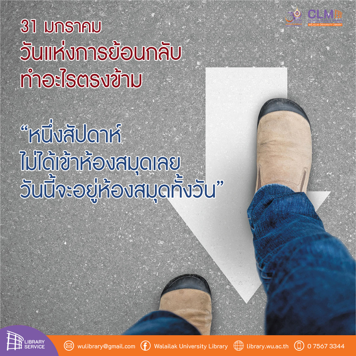 วันแห่งการย้อนกลับตรงกับวันที่ 31 ม.ค. ของทุกปี โดยเป็นวาระที่เปิดโอกาสให้ทุกคนได้ทำทุกอย่างแบบ “ย้อนกลับ” “กลับด้าน” หรือว่า “ถอยหลัง” ไม่ว่าจะเป็น เดินถอยหลัง สวมเสื้อกลับหลัง หรืออ่านหนังสือแบบย้อนกลับ หรือถ้าจะให้สุดๆ ไปเลย ลองทำทุกสิ่งย้อนหลังกลับด้านไปทั้งวัน โดยเริ่มจากนอนช่วงกลางวัน ตื่นตอนเย็นแล้วเริ่มต้นทำงาน รับประทานอาหารเย็นเป็นมื้อแรกแล้วปิดท้ายวันในมื้อเช้าของอีกวัน กล่าวทักทายว่า “ลาก่อน” และลาด้วยคำว่า “สวัสดี” แต่ทั้งนี้และทั้งนั้นต้องคำนึงถึงความเหมาะสมและไม่กระทบต่อหน้าที่การงานด้วยนะ31 มกราคม วันแห่งการย้อนกลับ (Backward Day)