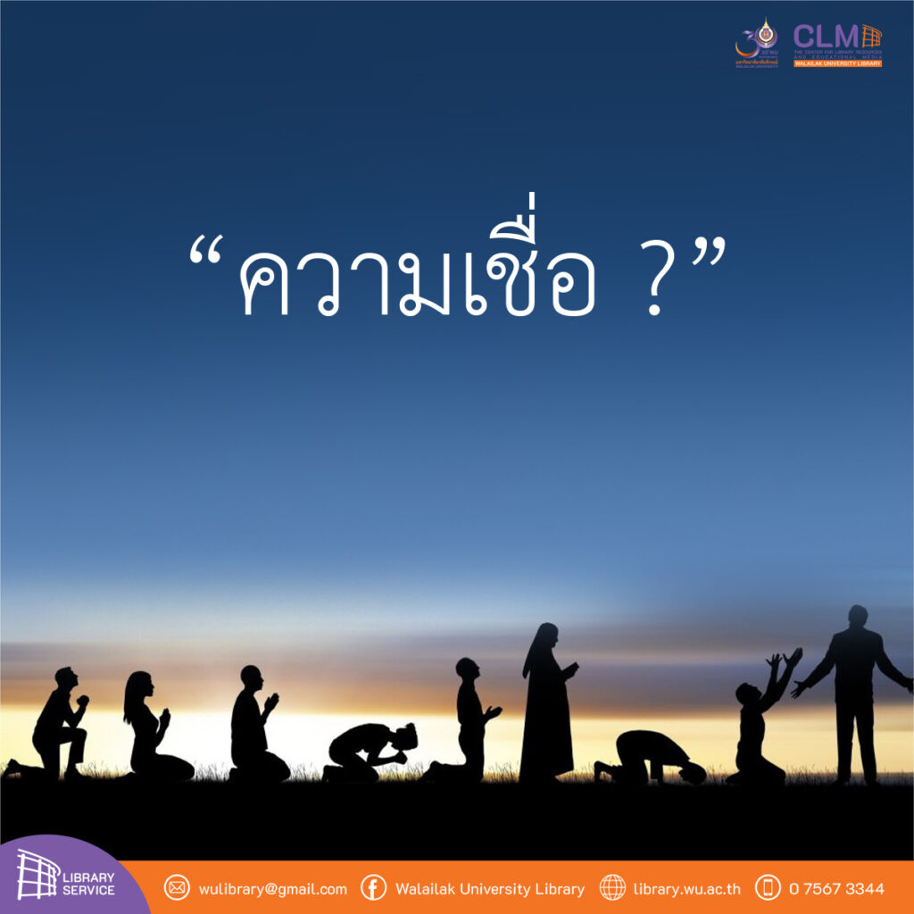 ความเชื่อ ความเชื่อเป็นธรรมชาติที่เกิดขึ้นของมนุษย์ เป็นวัฒนธรรมของมนุษย์อย่างหนึ่ง ความเชื่อจึงเกิดขึ้นจากการเกิดขึ้น การเปลี่ยนแปลงของธรรมชาติที่มนุษย์เชื่อว่าเป็นการบันดาลให้เกิดขึ้นจากอำนาจจากเทวดา พระเจ้าหรือภูตผีปีศาจ เช่นฝนตก ฟ้าร้อง ล้วนมีอิทธิพลของมนุษย์ ซึ่งไม่สามารถแก้ไขเองได้ บางอย่างอาจจะเป็นประโยชน์กับมนุษย์ บางอย่างอาจทำร้ายมนุษย์ มนุษย์จึงพยายามคิดหาวิธีที่จะก่อเกิดเป็นผลดี เพื่อกระทำต่อสิ่งที่มีอำนาจเหนือะรรมชาติเหล่านั้น ทำให้เกิดแนวทางปฎิบัติที่เป็นพิธีกรรม ความเชื่อคือการยอมรับว่าสิ่งใดสิ่งหนึ่งเป็นความจริงหรือสิ่งที่เราไว้ใจ ไม่จำเป็นต้องมีเหตุผลทางวิทยาศาตร์ คนที่เชื่อในเรื่องของเครื่องรางของขลังมีความเชื่อเครื่องรางเหล่านี้จะให้คุณให้โทษได้ โดยสรุปกล่าวคือ การยอมรับว่ามีอยู่จริงและเป็นจริง และมีอำนาจจะบันดาลให้ผลดีหรือร้ายได้ http://www.digitalschool.club/digitalschool/thai2_4_1/thai1_4/page4.php โทรศัพท์ภายนอก 0 7567 3336 โทรศัพท์ภายใน 73336 ksuwat@wu.ac.th
